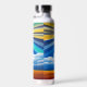 The bottle looks even better in real life. The ice cubes I put in lasts all day! I have my bottle with me all the time. It's summer and having something cold to drink feels amazing. With this bottle I always have something super cold. I have only tried the hot drink once and it lasted a long time as well. The color blue is a navy blue and the white printed on it is vibrant. It printed perfectly. I love my personalized smile water bottle.