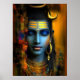 ✨ Golden ornaments, sacred markings, and the crescent moon crown his deep blue skin, evoking his celestial role as Mahadeva, the Great God. The right side of the portrait dissolves into vibrant abstract textures, symbolising the cosmic dance of creation and dissolution. This piece is both a visual mantra and spiritual portal — ideal for seekers of peace, depth, and awakening.