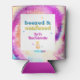 This can cooler features a bright tie dye background and fun groovy 70s themed font with the saying, "boozed and confused". This can cooler includes fun engagement ring peace signs and stars and is perfect for your 70's hippie themed bachelorette party or bridal weekend.
