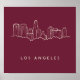 This design features a hand drawn illustration of the Los Angeles skyline on a magenta background.