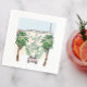 Celebrate your Los Angeles wedding with these charming 'Just Married' cocktail napkins, featuring a whimsical watercolor illustration of the iconic Hollywood sign. The sign has been playfully transformed to read 'Just Married,' capturing the essence of your big day. Below, a getaway car with the newlywed couple inside drives off into the sunset, adorned with classic wedding details like trailing cans and flowers. The soft pastel colour palette and hand-painted style give these napkins a romantic, playful touch, perfect for adding a personal and stylish flair to your wedding reception.