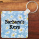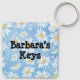 Lost keys? Where are my keys? Has anybody seen my keys? What you need is a funny keychain that shouts at you from wherever you left them last, "Here They Are!" And on the back you can put your name, so if somebody finds them and wonders whose they are... they're yours! Problem solved. This keychain even has a pretty light blue background covered with white and yellow daisies.