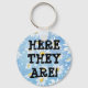Lost keys? Where are my keys? Has anybody seen my keys? What you need is a funny keychain that shouts at you from wherever you left them last, "Here They Are!"Problem solved. This keychain even has a pretty light blue background covered with white and yellow daisies.