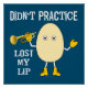 Didn't practice lost my lip text with an egghead holding a trumpet is a funny gift design for trumpet musicians, music teachers and students in concert, jazz and marching band.