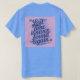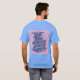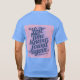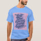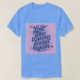 This is a Lost Time Productivity Quote by Ben Franklin t-shirt. The quote is Lost time is never found again. The quote design was artistically created with generative art. The quote is in slanted script in a blue colour on a pink background. The name Ben Franklin is after the quote. The t-shirt is a mens unisex blue t-shirt. The quote is on the front and back of the t-shirt.