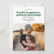 This modern holiday card features the words "wishing you health, happiness, and lots more hugs in the coming year" written in green and black. It has space for a single photo and would be perfect as either a holiday card or a new year's card.