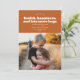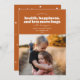 This modern holiday card features the words "wishing you health, happiness, and lots more hugs in the coming year" written in white on a rust coloured background. It has space for a single photo and would be perfect as either a holiday card or a new year's card.