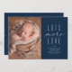Send a sweet Valentine's Day or anytime birth announcement with this one-photo card. With a simple "lots more love" type treatment and plenty of room for custom text, this is the perfect way to introduce your newest little love to the world. The back is a matching speckled navy blue with room for an additional photo and more text. The colour can be changed by clicking "customise further."