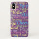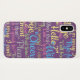 Decorative phone case for a word lover. English language wording design. Chattering design in various colours on a purple phone case.