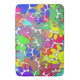 Colourful pattern of dog paw prints in many sizes, angles and colours.