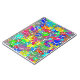 Colourful pattern of dog paw prints in many sizes, angles and colours.