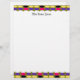 This bright customisable letterhead is covered in lots of spots of purple, pink yellow and black arranged in rows separated by areas of dark green. This fantastic abstract brings to mind a wall covered in splodges of paint after a paintball game. The text at the top of the letterhead is customisable so you can add your name or company name. You can also click on the "customise it" button and add additional text, such as address and contact details, anywhere on the letterhead in a range of font styles and colours.