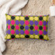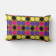 This awesome pillow is covered in lots of spots of purple, pink yellow and black arranged in rows separated by areas of dark green. This fantastic abstract brings to mind a wall covered in splodges of paint after a paintball game.