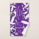This team colours towel for volleyball players features varied size purple & white volleyballs turned every which way on a white background and prominent jersey number in purple overlying a bold, full length purple colour strip, upon which you can also personalise the athlete's name, team name & mascot name - by katz_d_zynes