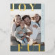 LOTTIE Blue Foil Joyful Family Photo Christmas Foil Holiday Card.