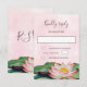 Watercolor lotus on a pink watercolor background. Matching invitation available.