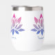 This practical and pretty floral wine tumbler has three blue-pink coloured lotus flowers with editable text for a fun and joyous drinks break. The three items of text for you to edit and customise are: "THANKFUL" "HAPPY" and "JOYFUL".