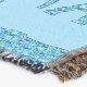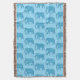 Fleece blanket in a digital graphic of a richly embellished elephant. in a turquoise, dark indigo blue and white lotus flower pattern against an aqua background