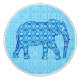 Knob in a Mixed media digital graphic of an elephant against an arabesque tiled background - turquoise, dark indigo blue and white lotus flower pattern against an aqua background