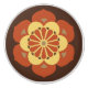 Japanese mandala design ceramic knob that depicts a stylised lotus flower, symbolising purity, spiritual awakening and faithfulness - flower in rust orange / terracotta and golden yellow, accented with tan, on a dark chocolate brown background