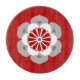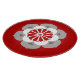Japanese mandala design cutting board that depicts a stylised lotus flower, symbolising purity, spiritual awakening and faithfulness - flower in silver grey / grey, red and white, on a dark Chinese red background