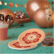 Japanese mandala design paper plate that depicts a stylised lotus flower, symbolising purity, spiritual awakening and faithfulness - flower in deep mandarin orange, medium orange and cream on a soft pastel orange background