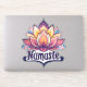 Embrace serenity with this durable lotus flower "Namaste" vinyl sticker, designed for both indoor and outdoor use. Featuring a delicate lotus design and the word "Namaste," this sticker is perfect for adding a touch of tranquillity to your personal items, whether it’s your water bottle, laptop, car, or yoga gear. Ideal for yoga enthusiasts, spiritual practitioners, or anyone seeking a peaceful and meaningful design that withstands the elements.