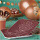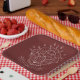 White lotus flower floral botanical line drawing on a burgundy red background. A calming tableware design for your next meditation party or yoga get together.