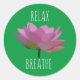 Lotus Flower Yoga Meditation Classic Round Sticker designed by Nisha Prabhu CuteHomeGifts. Beautiful watercolor pink lotus flower with quote ''RELAX. BREATHE''. Perfect gift for yoga instructor, meditators, healers. Fully Customisable. Personalise with your own quote.