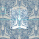 Originally drawn in ink ~ ornate blue floral pattern with sunflowers and lotus flowers with woman in sitting yoga lotus position ~ vintage texture ~ half drop repeating pattern file for fabric, feel free to adjust scale as required.