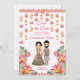 Pink lotus flowers with Moroccan lanterns and Indian bridal couple Indian wedding save the date invitation template.