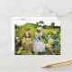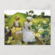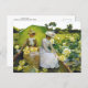 A fine art postcard featuring the impressionist painting, Lotus Lilies (1888) by the American artist Charles Courtney Curran (1861-1942)). Curran was renowned for his paintings of figures and landscapes, particularly women. The artwork depicts two women under parasol in a boat surrounded by yellow water lilies.