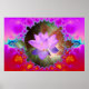 Digital art that showcases fractal imagery surrounding lotus flower, with photograph of Orion star system in the background.