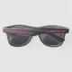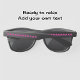 To co-ordinate with other items in the Lotus "Flower Collection". The arms of the sunglasses feature a repeating pattern of a pink lotus flower petal. Also, there is editable text in a matching pink: "PEACE" on the left and "RELAX" on the right.