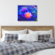 Beautiful image of pink lotus flowers in pond in deep shades of blue. A stunning addition to your home.