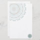 This concentric circle mandala features layers of white, turquoise and brown patterns inspired by Celtic weaves and Indian henna, such as vines, ribbons, and lotus flowers.