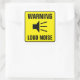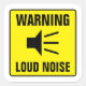 Loud noise hazard warning sign icon square sticker. Black and yellow sticker to warn people about high sound levels. Wear ear protection to prevent hearing damage and tinnitus. Custom signage for factory, workplace, office room, music festival, concert, fireworks show, restaurant, stadium, cinema, wedding, store, shop, DJ party, show, bar, cafe, disco, sports event, club, busy street and other places. Wear over the head earmuffs or earplugs to reduce the decibels. Tip: have earplugs ready on your keychain. Be careful with high volume sounds.