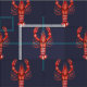 Louisiana watercolor Cajun crawfish patterned fabric with a dark navy blue coloured background.