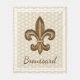 Beautiful neutral colours fleece blanket featuring a gold french fleur de lis symbol, beige background with small white fleur de lis pattern, and your family name in dark brown script. This blanket makes a great gift for family members!