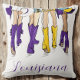 A pillow with a fashion illustration print of ladies proudly representing their school in Louisiana, styled in purple and yellow with cowboy boots and hats! It perfectly captures that Southern spirit and school pride. Louisiana is in purple script on the bottom. Perfect for dorm rooms, bedrooms, birthdays, holiday gifts, or graduation gifts.