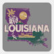 Classic square sticker / envelope seal features retro style Louisiana state silhouette on medium grey background