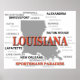 Louisiana state pride image including map silhouette with cities,towns and nickname.