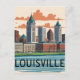 Bring the vibrant energy of Louisville, Kentucky, into your space with this stunning retro travel poster. Showcasing the city's iconic skyline under a dramatic sunset sky, this illustration features detailed architecture, a scenic bridge, and reflections on the Ohio River. Designed in a vintage postcard style with warm tones and classic lettering, it's perfect for adding charm to any home, office, or gallery wall. An ideal gift for Louisville natives, visitors, or lovers of American cityscape art.