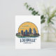 Bring the vibrant energy of Louisville, Kentucky, into your space with this stunning retro travel poster. Showcasing the city's iconic skyline under a dramatic sunset sky, this illustration features detailed architecture, a scenic bridge, and reflections on the Ohio River. Designed in a vintage postcard style with warm tones and classic lettering, it's perfect for adding charm to any home, office, or gallery wall. An ideal gift for Louisville natives, visitors, or lovers of American cityscape art.