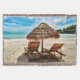 Lounge chairs on beach throw pillow