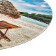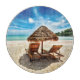 Lounge chairs on beach throw pillow cutting board