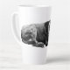 A relaxed dog stretches into a soft-focus pose that settles your morning pace. The shaded look adds texture without shouting. Ideal for quiet kitchens, desk sips, and thoughtful gifting.