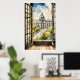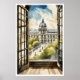 Beautiful original artwork / sketch of the Louvre seen through a window.