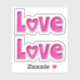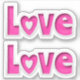 Two stickers of the word "Love" with heart shape