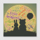 Graphic of a lovely bear and rabbit as silhouette at a sunset with lovely words...